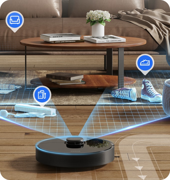 Qabaqcıl AI və LDS maneələrin qarşısının alınması ilə siz təmizlikdə hands-off funksionallıqdan istifadə edə bilərsiniz. Süni intellekt maneələri dəqiq müəyyən edir və onların qarşısını alır, təmizlik strategiyalarını tövsiyə etmək üçün otaqları müəyyənləşdirir və bir nöqtəni qaçırmayan effektiv, səmərəli təmizləmə aparmaq üçün evinizin xəritələrini sürətlə qurur.