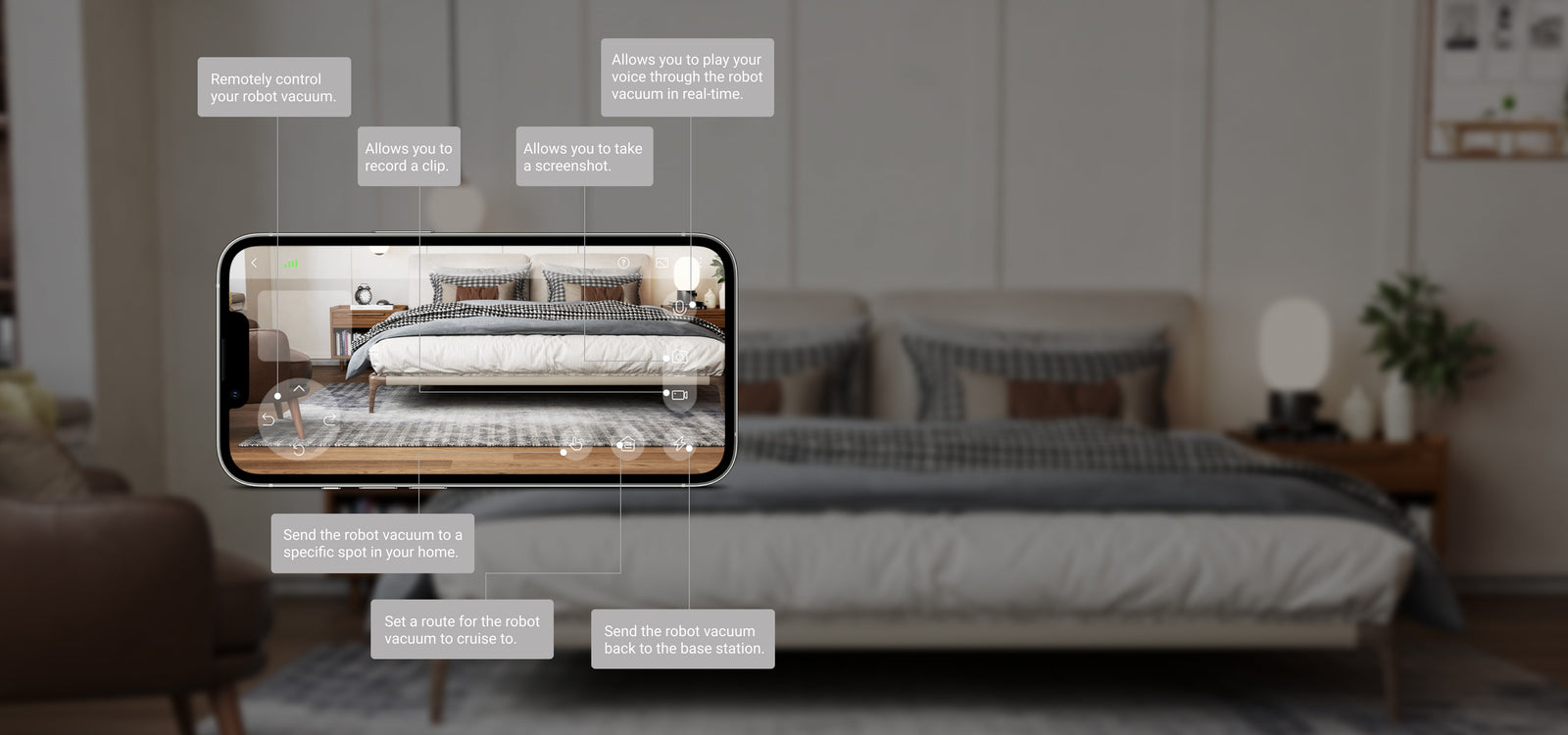 Uzaqdan video nəzarəti* harada olursunuzsa olun, evinizi, ev heyvanlarınızı və uşaqlarınızı yoxlamağa imkan verir. Evinizə tamamilə yeni perspektivdən baxmaq üçün robot gözü ilə baxın və ya telefonunuzun bir neçə toxunuşu ilə mebelin altındakı boşluqları yoxlayın.