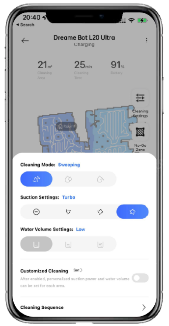 Təmizliyi evinizə və cədvəlinizə uyğunlaşdırmaq üçün proqram vasitəsilə nəzarəti ələ keçirin.Telefonunuz ilə rahat, otaqları bölmələrə ayırın, virtual divarlar yaradın, qadağan olunmuş zonaları təyin edin və təmizliyi planlaşdırın.