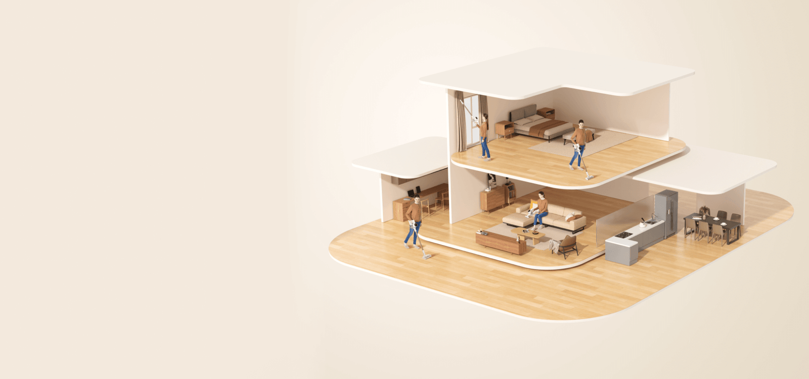 60 dəqiqəyədək sorma gücü azalmadan fasiləsiz, rahat təmizlik. Bütün evinizi 120W sorma gücü ilə 120.000 RPM fırçasız mühərrik və 7x2,500 mAh batareya dəsti sayəsində tük, çirk, toz və digər zibilləri gizlənə biləcəkləri bütün yerlərdən birdəfəlik təmizləyin.